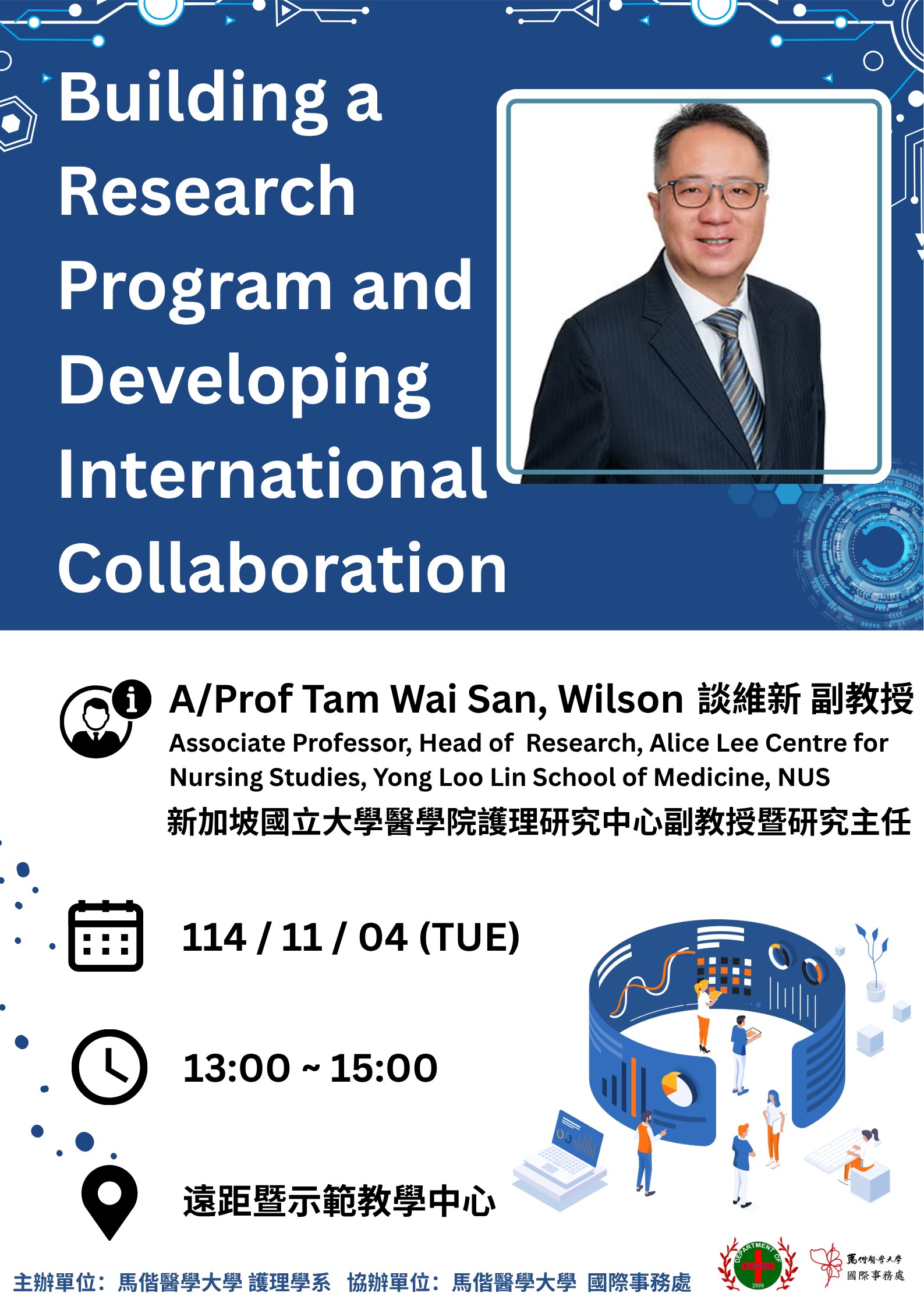 [2025/10/21] 【校內活動】本校護理系11月4日(二)敬邀新加坡國立大學醫學院護理研究中心談維新副教授辦理專題演講