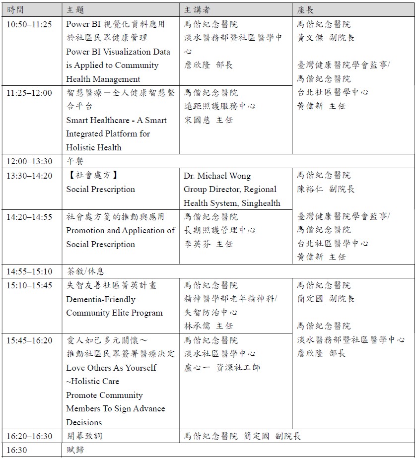 [2025/11/26] 【研討會】馬偕紀念醫院與灣健康醫院學會11月29日辦理2025年馬偕紀念醫院社區健康促進國際研討會