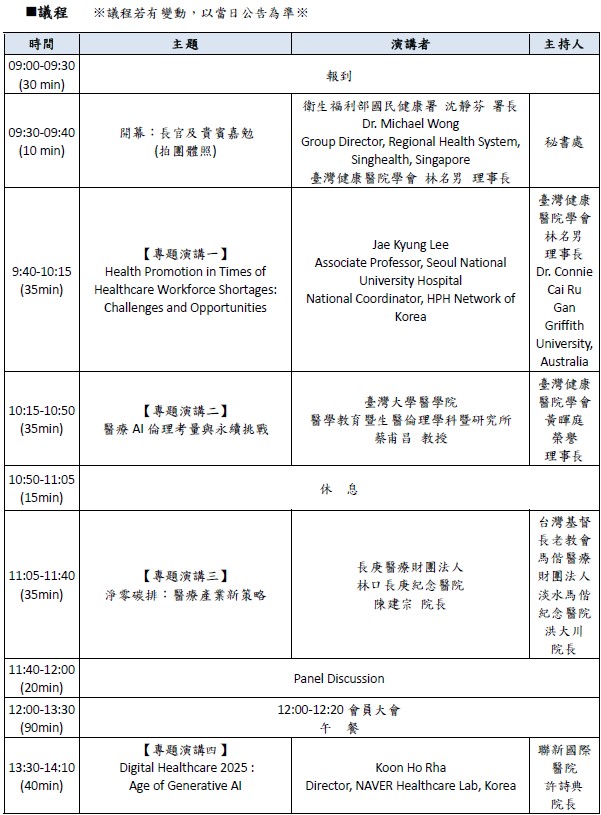 [2025/11/26] 【研討會】社團法人臺灣健康醫院學會11月30辦理2025 健康促進醫院與照護機構國際研討會暨會員大會