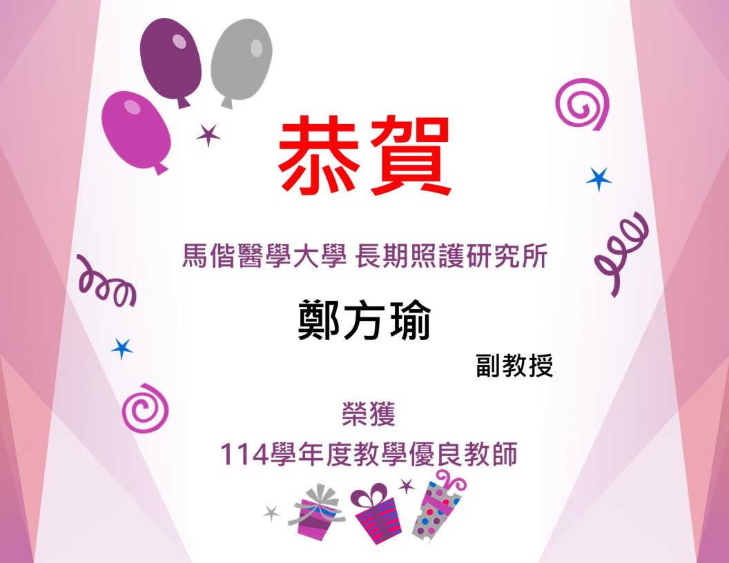 [2026/01/15] 【賀】本所鄭方瑜教師榮獲「114學年度教學優良教師」